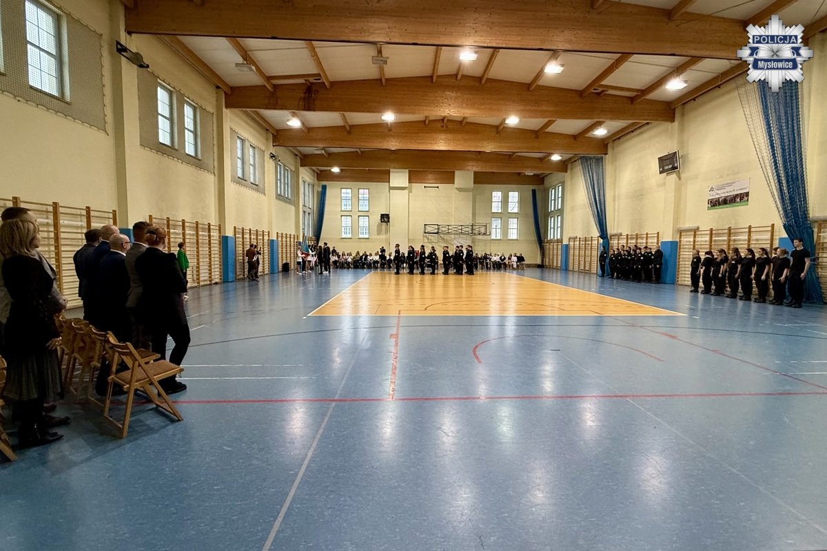 Dbanie o dobre imię szkoły i sumienne wypełnianie obowiązków ucznia - to w obecności rodziców, nauczycieli, starszych kolegów i zaproszonych gości ślubowali licealiści klas mundurowych. Wśród uczestniczących w uroczystości osób, nie zabrakło także przedstawicieli służb mundurowych. KMP w Mysłowicach reprezentował I Zastępca Komendanta Miejskiego Policji w Mysłowicach mł. insp. Piotr Migacz.