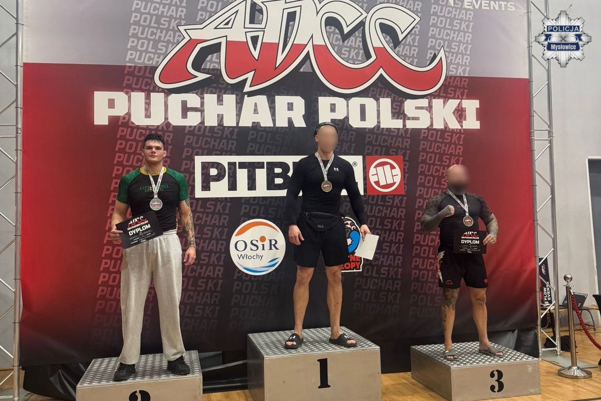 Wśród nich w kategorii +100 kg wystartował policjant z mysłowickiej patrolówki post. Oskar Kamieniecki, który zajął ostatecznie drugie miejsce, zdobywając srebrny medal.