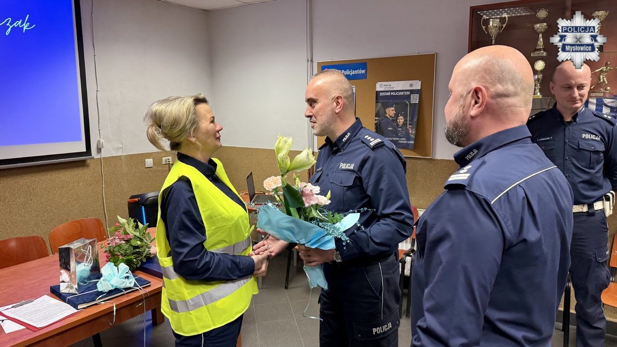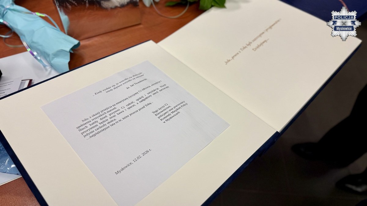 W imieniu wszystkich policjantów i pracowników mysłowickiej komendy serdecznie dziękujemy za każdy dzień służby na rzecz bezpieczeństwa mieszkańców Mysłowic i życzymy zdrowia, spokoju, radości i spełniania marzeń na zasłużonej emeryturze!