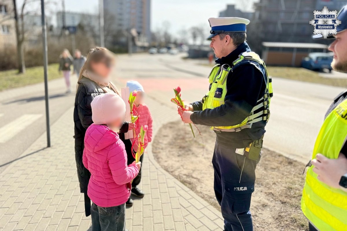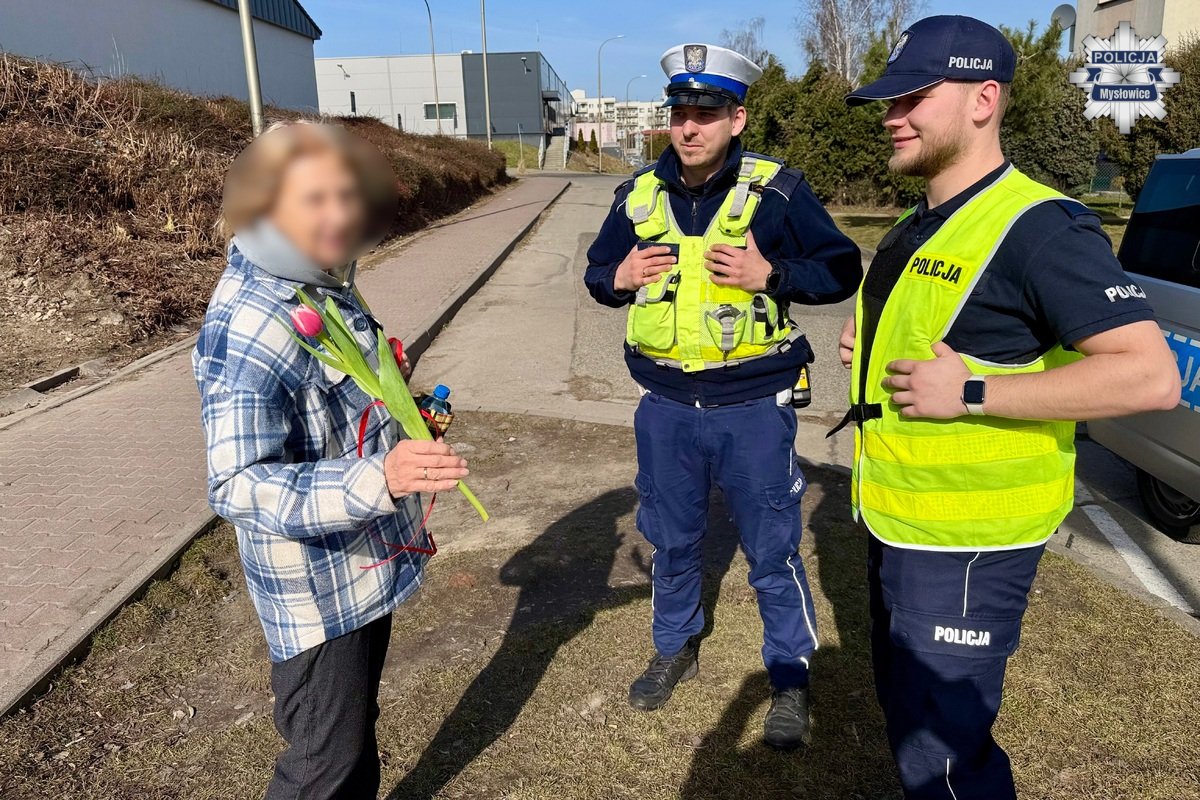 Z okazji Dnia Kobiet policjanci z mysłowickiej drogówki wyruszyli na ulice miasta z tulipanami, które wręczali w trakcie kontroli kobietom. Mundurowi przypominali kontrolowanym paniom zasady bezpieczeństwa w ruchu drogowym, które obowiązują wszystkich kierujących i pieszych. Tego dnia nie zabrakło również życzeń z tej wyjątkowej okazji.