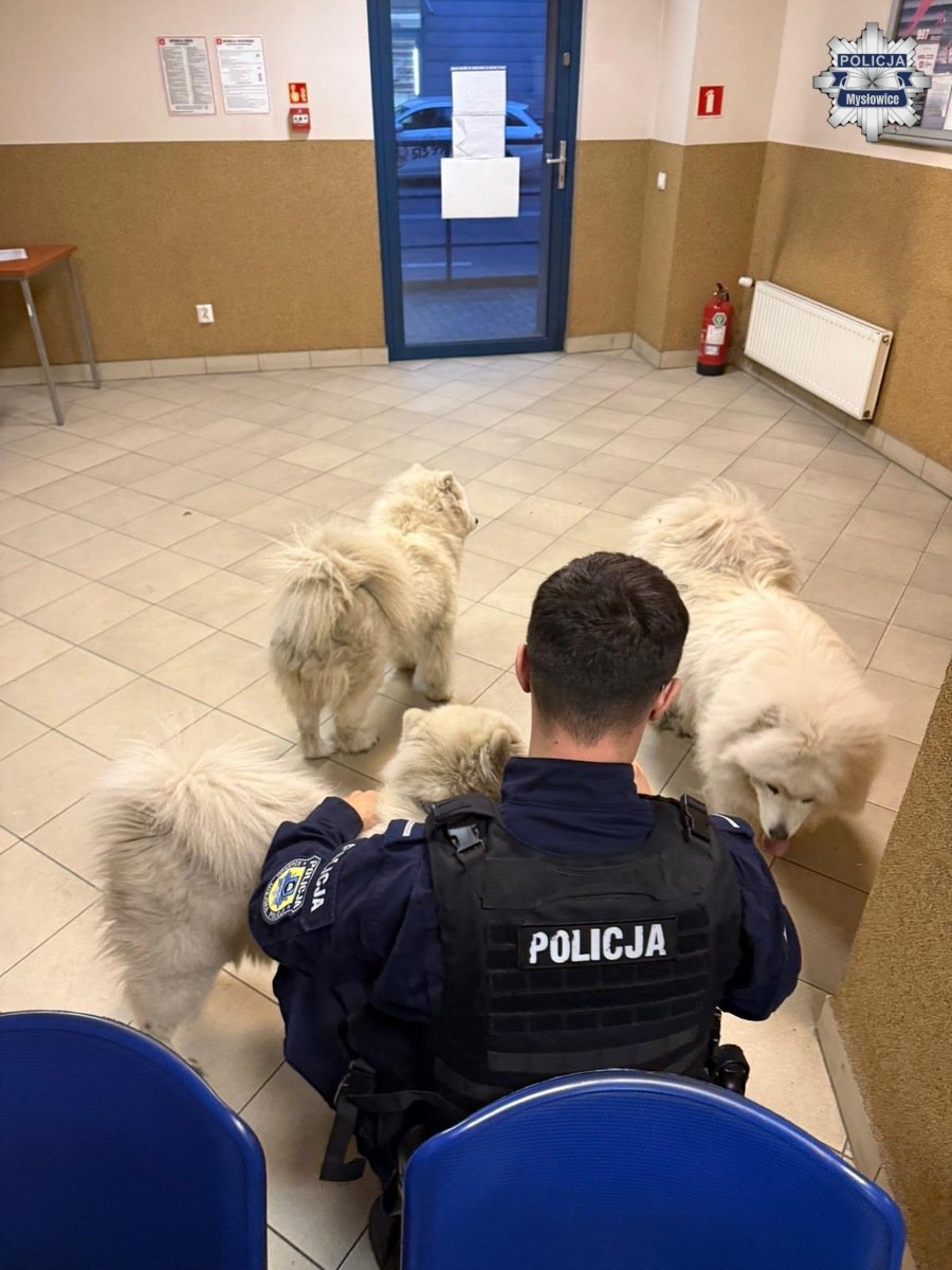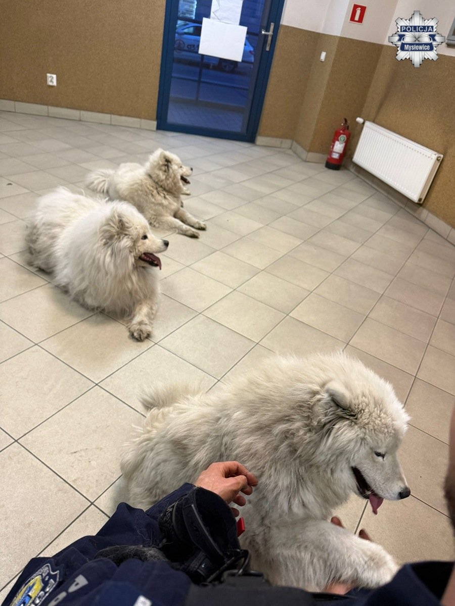 Do nietypowej interwencji doszło w niedzielę, 5 kwietnia chwilę po godzinie 19:00. Dyżurny mysłowickiej jednostki odebrał zgłoszenie od obywatela, który zauważył trzy białe psy biegające po ulicy Towarowej. Policjanci z Mysłowickiej patrolówki zabezpieczyli zwierzęta, a następnie, by zapobiec ich kolejnej ucieczce, postanowili "zaprosić" je do komendy, gdzie mogły przeczekać w bezpiecznych warunkach do czasu ustalenia ich właściciela.