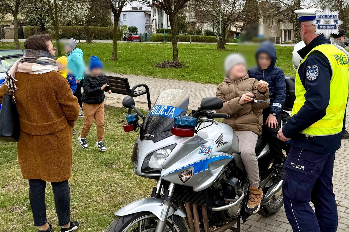 Mysłowiccy policjanci przeprowadzili wczoraj krótką prelekcję i pokaz sprzętu na spotkaniu społeczno- charytatywnym organizowanym przez Stowarzyszenie Serce Dla Świata. Dzielnicowy i policjant z drogówki opowiedzieli dzieciom jak bezpiecznie zachowywać się w ruchu drogowym oraz w miejscu zamieszkania. Największą atrakcją była prezentacja policyjnego radiowozu i motocykla.
